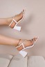 Sandales à bout et talon carré en simili avec bride torsadée strass